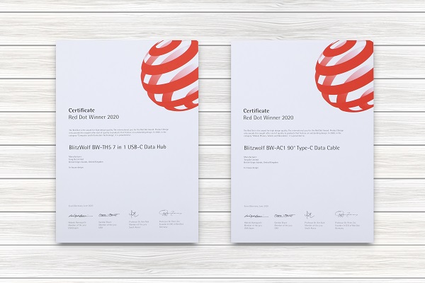 近日,2020年德国红点设计奖获奖名单正式在官网公布。棒谷独立站自营品牌BlitzWolf两款产品BW-AC1(直角线材)和BW-TH5(拓展坞)凭借出色的设计理念,双双获奖。